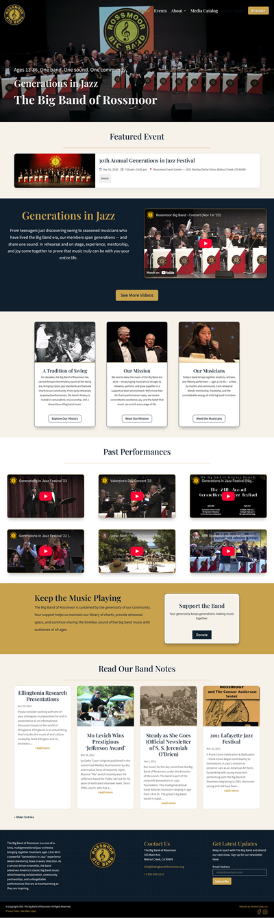 Built on a flexible, modular framework, the website allows for seamless updates as the band’s 140-page repertoire grows and new seasons are announced. The result is a polished, community-centric online presence that feels as classic and synchronized as the big band charts it celebrates.